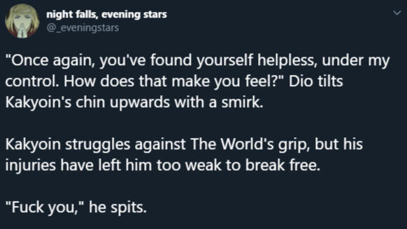 Here's a collection of ficlets / Twitter threads that aren't long enough to warrant being turned into an actual fic. Beware of NSFW and/or problematic content.