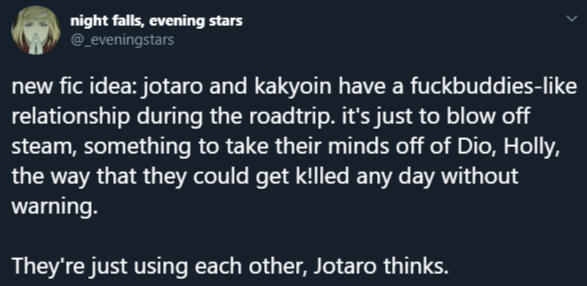 she/her ✿ 18+ ✿ artist and writer ✿ FUB freeMultifandom (usually JJBA/Genshin)