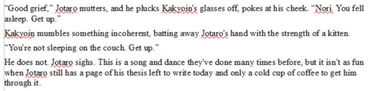 You can make a request (for a drabble or sketch) alongside a donation and I will get to filling it as soon as possible. Note the squicks I have under Tags--I have the right to refuse any request without explanation.